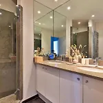 Centre St Tropez - 2 Pieces -Clim Piscine Parking features a flat-screen TV with satellite channels, along with climate control, ensuring guests' relaxation and comfort. Offering a separate toilet and a shower, a bathroom comes with hair dryers and bath sheets.